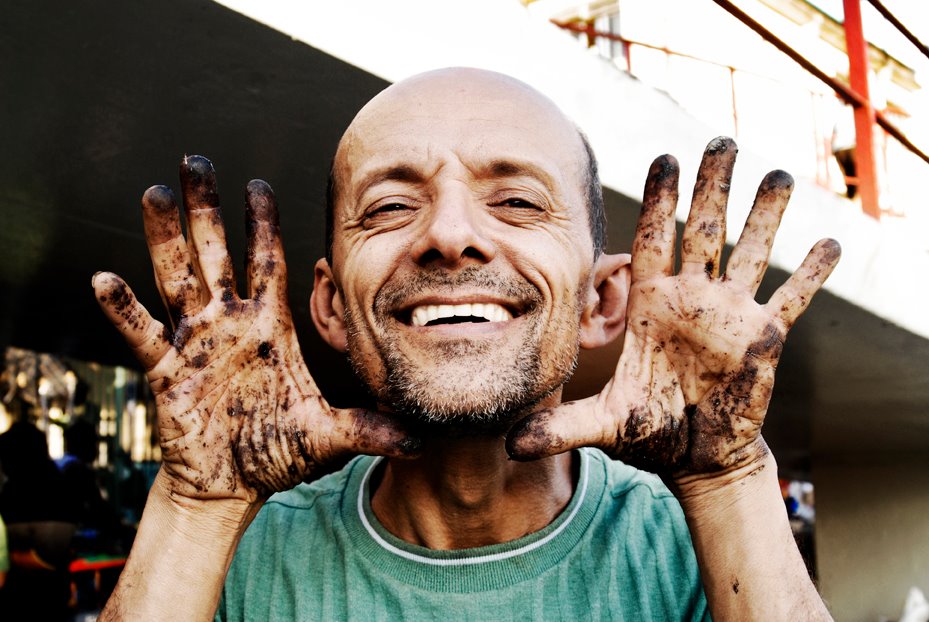 camarada com um sorrisão largo que vai de um canto ao outro da boca, aperta sua