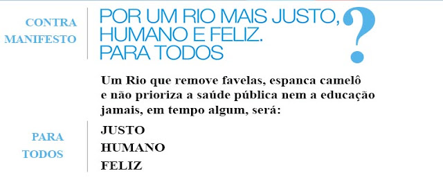 Este blogueiro que aqui fala teve o prazer em contribuir para a realização desta campanha que tem movimentado as redes sociais. A ideia da campanha é de refletirmos questões do dia-a-dia da juventude carioca, principalmente neste momento de pleito eleitoral.